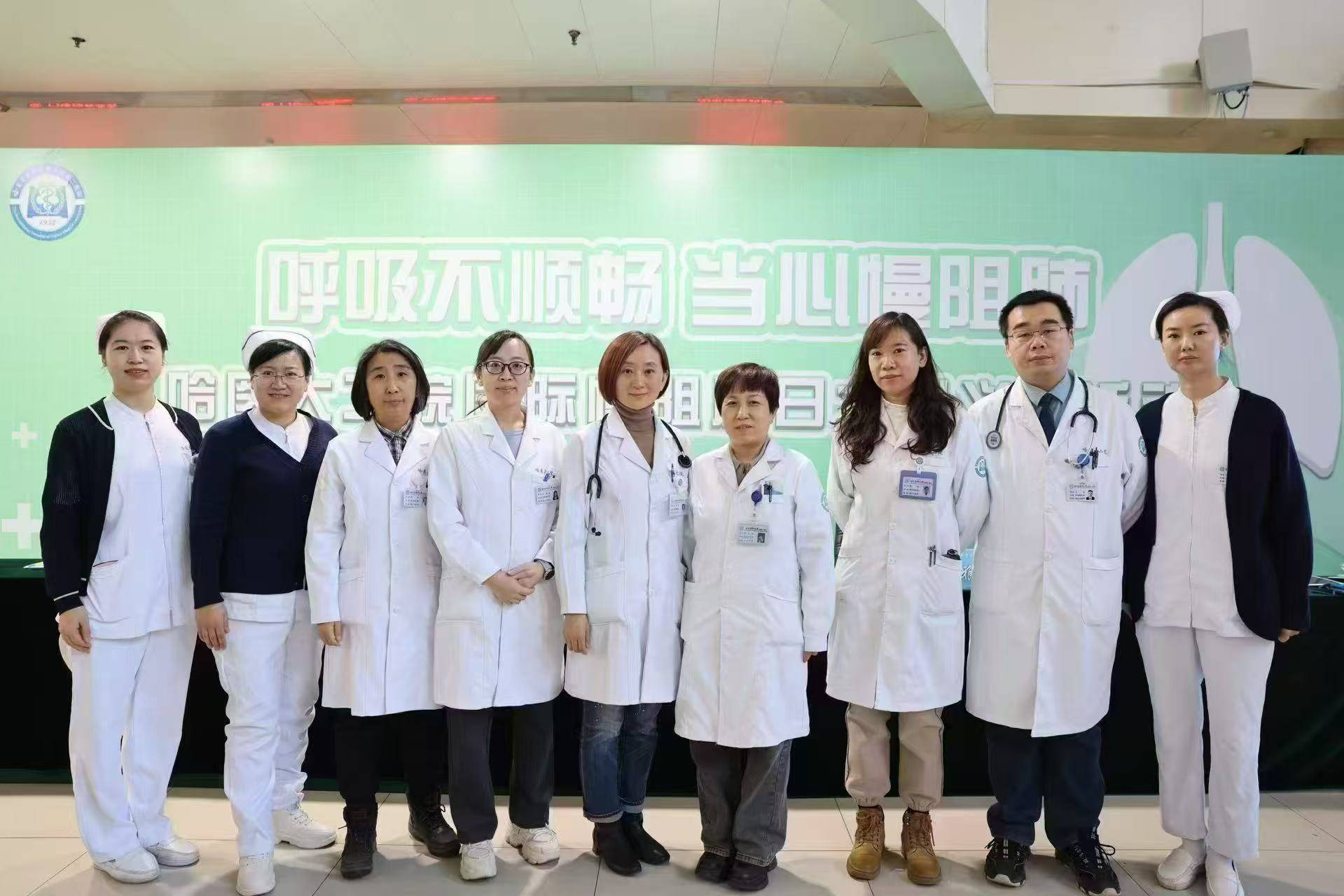 为提高公众对慢阻肺的认知水平,倡导科学规范管理,推动主动检测与早期干预,哈尔滨医科大学附属第二医院(以下简称为哈医大二院)呼吸与危重症医学科举办“世界慢阻肺日”大型义诊和科普宣教活动。活动由呼吸与危重症医学科苏冬菊教授带队,鲍永霞主任医师、周丹副主任医师、刘雅欣副主任医师、王浩副主任医师、杨原荻副主任医师、蒋哲副主任医师等专家为前来咨询的市民进行肺功能评估、慢阻肺风险筛查,耐心解答关于慢阻肺预防、长期治疗、康复管理等问题,指导患者规范吸入治疗、正确使用吸入装置,并根据个体情况提供个体化诊疗建议。通过此次义诊活动进一步提高公众对慢阻肺的认识,倡导广大市民关注肺健康,主动检测肺功能,做到早筛查、早诊断、早治疗、早康复,共同守护“会呼吸的生命”。
