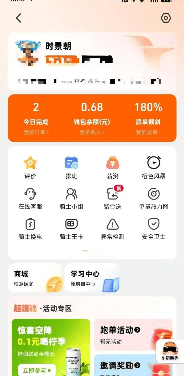 时景朝现在送外卖(受访者提供)
