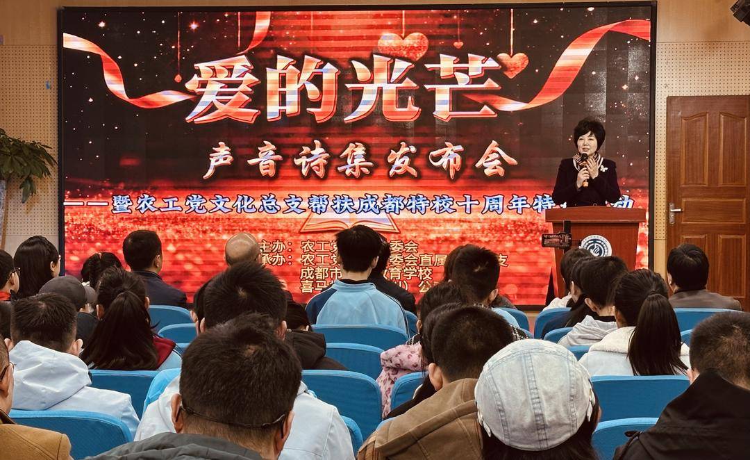 10年帮扶,见证坚持的力量。在12月3日国际残疾人日来临之际,12月1日下午,一场温情洋溢、意义深远的特别活动在成都温情启幕。由“爱的光芒”声音诗集发布会——暨农工党四川省委会直属文化总支帮扶成都市特殊教育学校十周年特别活动在成都特校举行。
