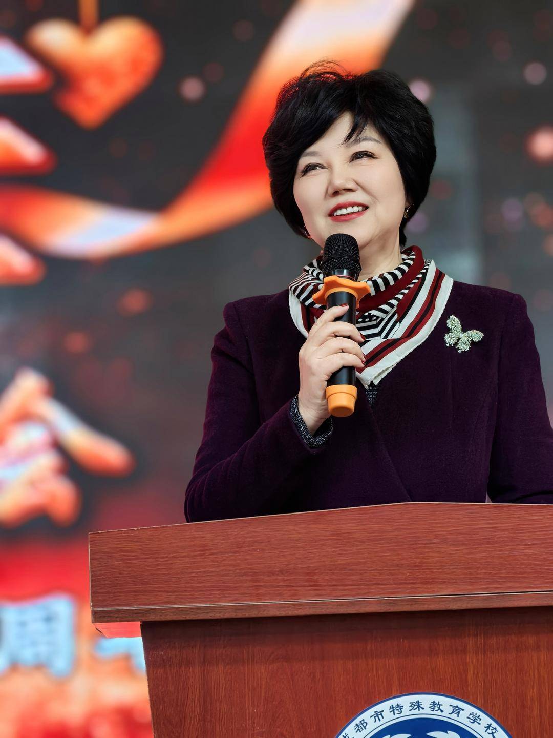 四川省政协常委、农工党四川省委会副主委、四川省文联副主席寒露深情回顾了这十年来的帮扶历程。她讲述:“这份坚持源于感动,始于责任。穿过十年的光阴,我依然清晰记得,2015年国庆联谊会上,当《我和我的祖国》旋律响起,来自成都市特殊教育学校的一名盲童,用双手捧起国旗,把国旗紧贴在脸颊,并深情地反复亲吻着。每每回忆起那一刻,我都忍不住潸然泪下:无论你身体健康还是残疾,对国家对民族的深情都是一样的。对祖国的爱从来不需要眼睛看见。它住在心跳里,长在呼吸中。就是从那个秋天开始,我们开始了这场温暖的跋涉。用专业所长,为这些孩子送去美的启蒙和心灵的陪伴。”