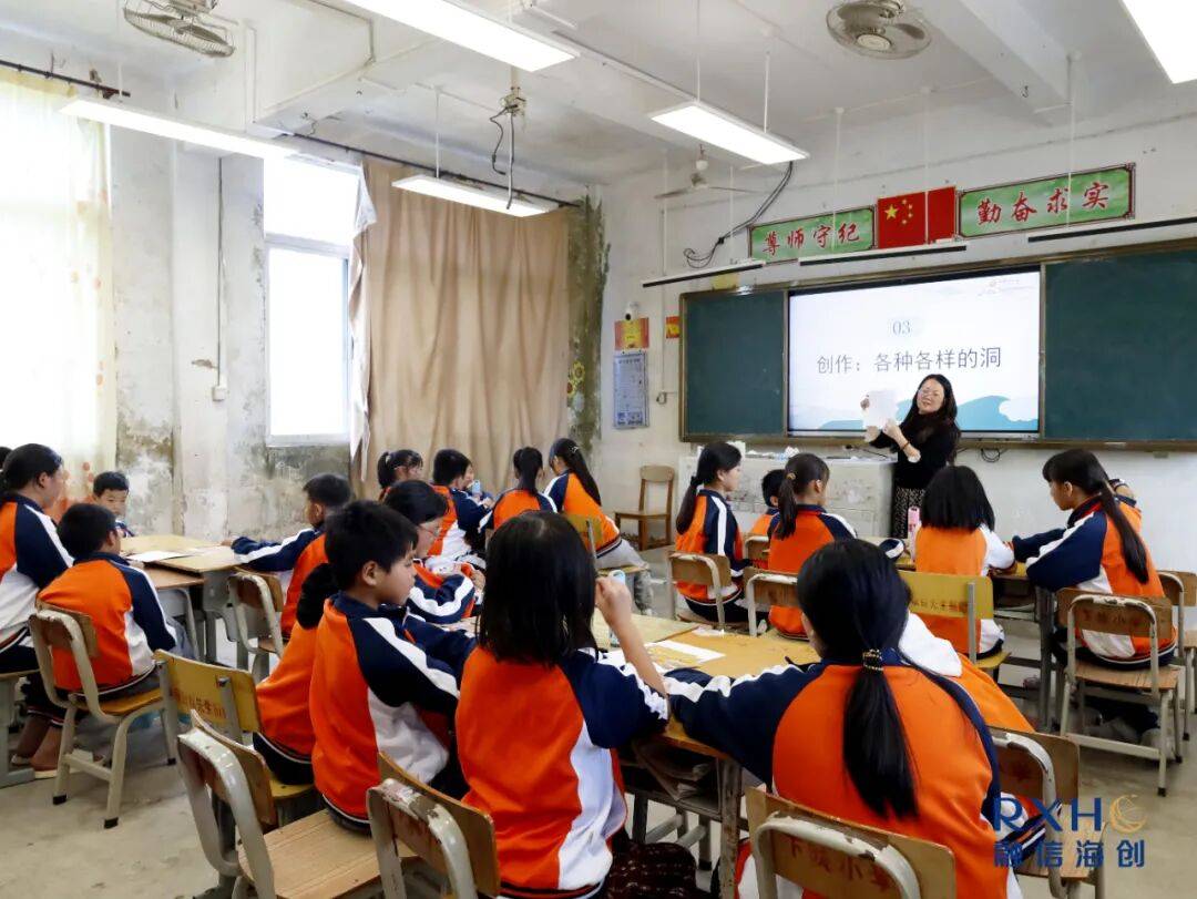 启动仪式结束后,融信海创代表与志愿者们走进教室,与孩子们开展了丰富多彩的互动活动。在共读绘本《嘿,有一个洞》的课堂上,孩子们踊跃参与组字游戏和故事分享,课堂氛围活跃而温馨。