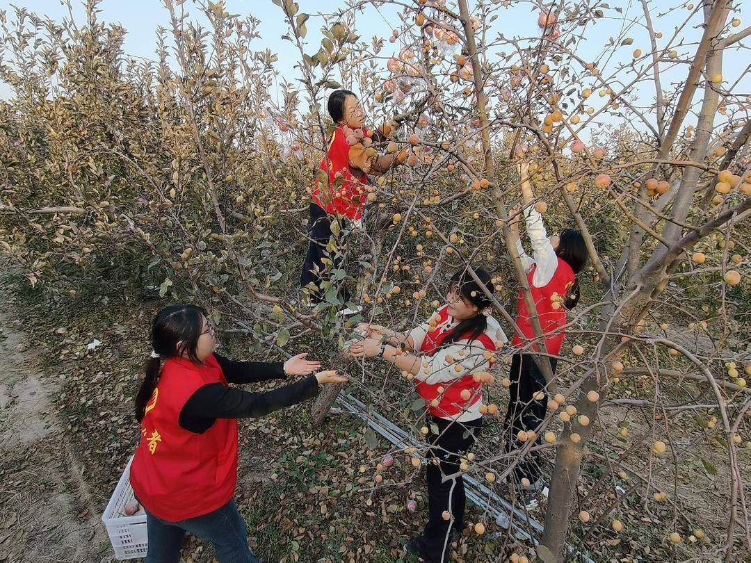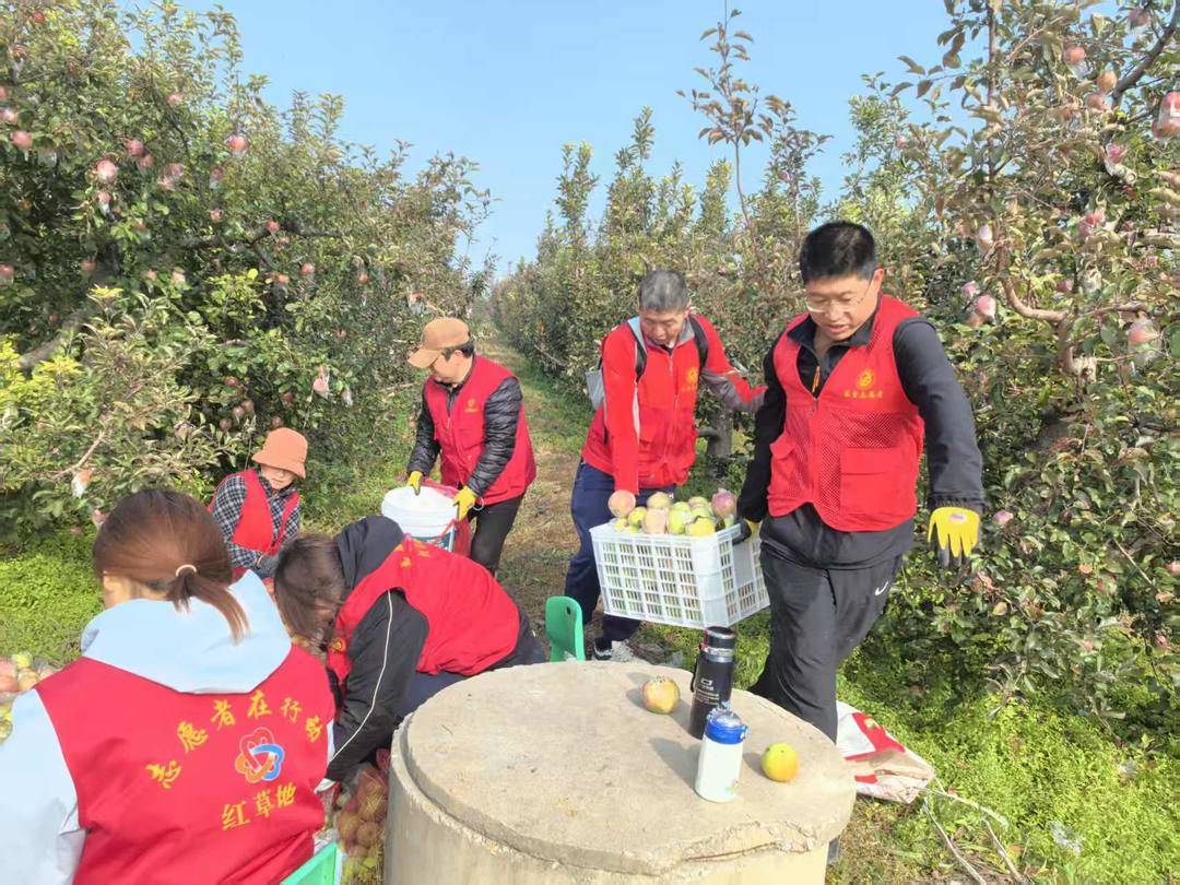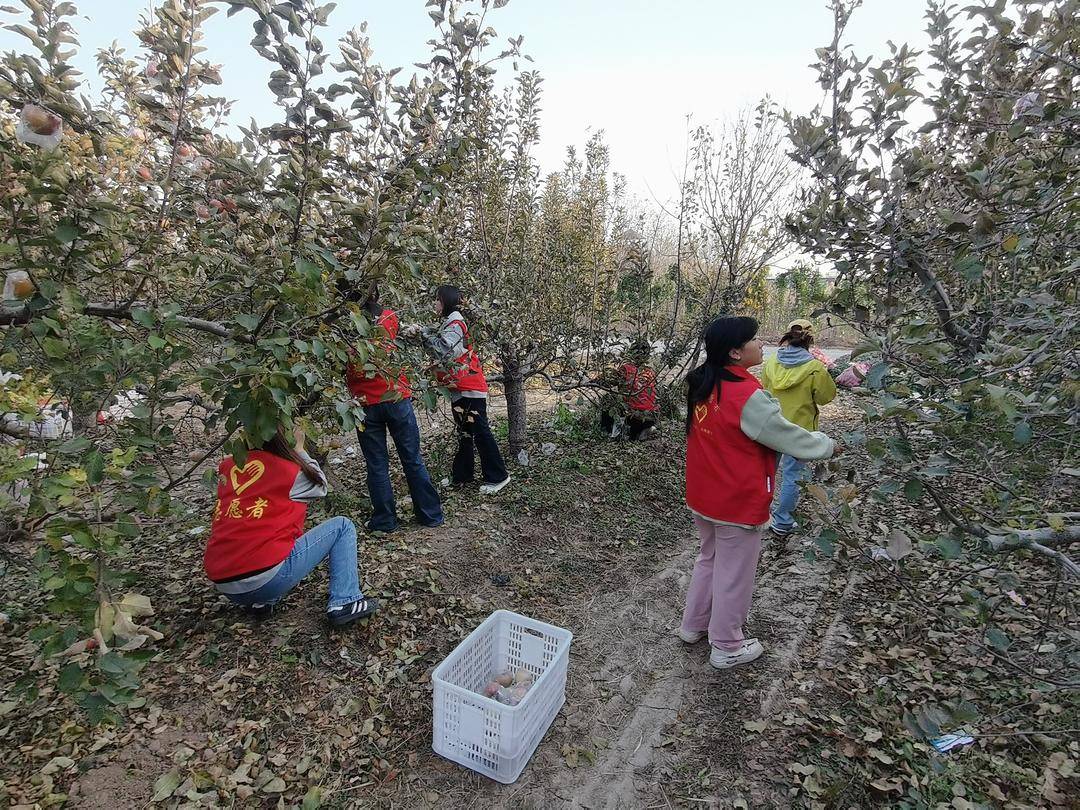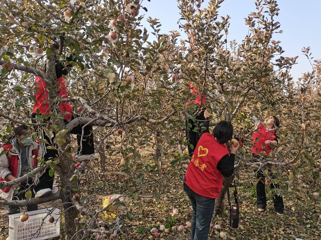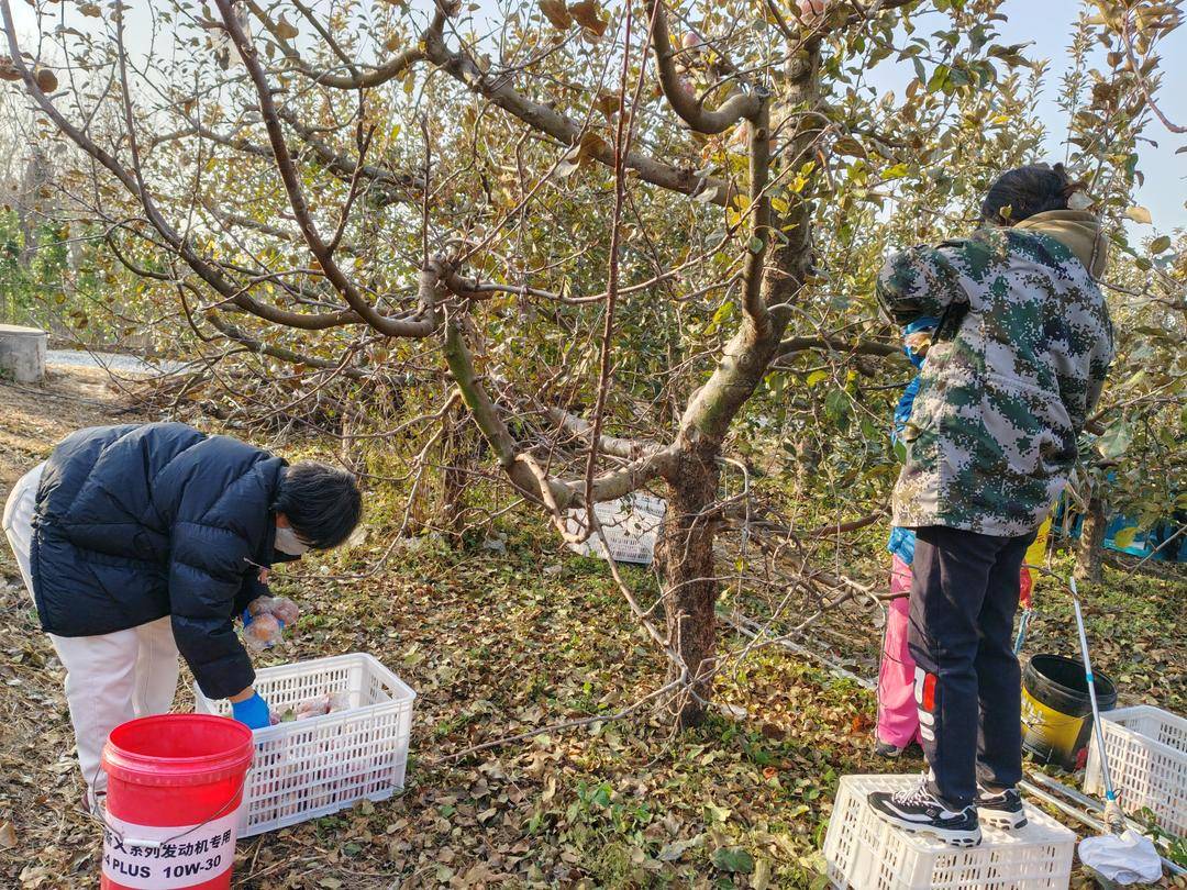 在丰泽园内,身着各色马甲的志愿者成为田间一抹亮色。他们分工有序、协作紧密,上午与下午各15人轮替作业,开展苹果采摘、落果捡拾、分拣装箱等一系列工作,力争在严寒天气到来前,帮助果农完成剩余苹果的归仓。
