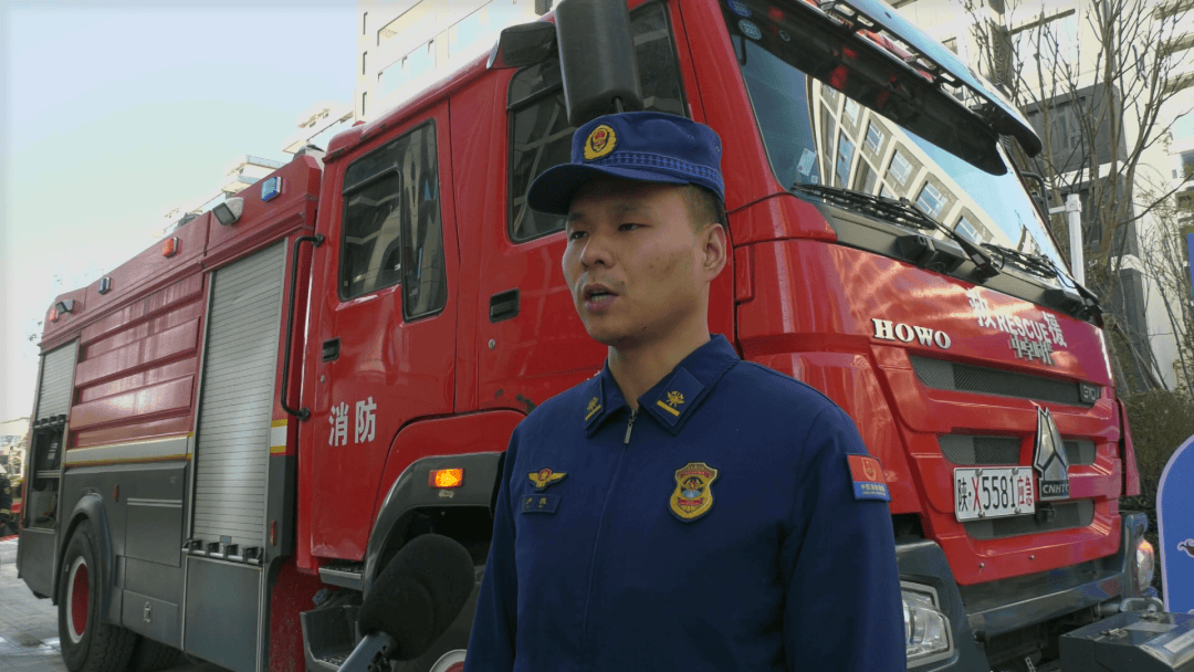 富平县消防救援大队三级消防士 卢巍:我们县消防救援大队在前期做了长时间的、大量的、细致有效的工作,包括防消联勤、高层测试、宣传进社区、宣传入户等。在这个过程中,我们也发现了大量的安全隐患,并及时的解决更正。我们的目的是为了提高大家的防火和自救意识,让大家能够更好地认识到消防安全的重要性。然后在发生火灾时,我们能够更熟悉地、更有效地进行救援。