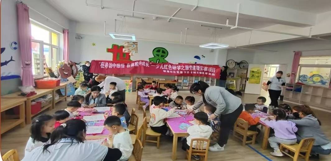 银海社区青年志愿服务者教孩子们画画(青山区融媒体中心供图)