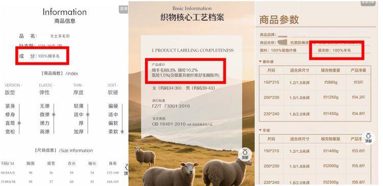 产品介绍与实际纤维含量不符,只是“羊毛陷阱”的表象。即便是标注“100%羊毛”的产品,实际检测结果也不一定是纯羊毛。