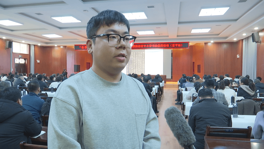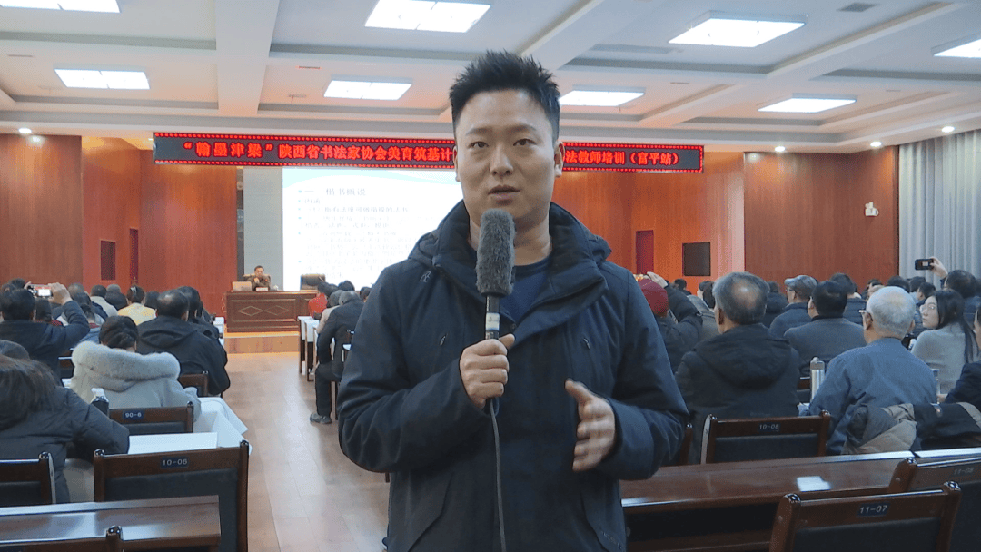 富平县融媒体中心记者 房嘉:我现在是在中小学书法教师培训现场,未来三天我县将在这里举办书法教师培训班,前来参加的学员有我县各中小学专职、兼职书法教师等。