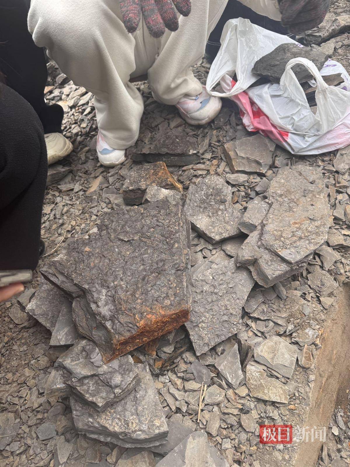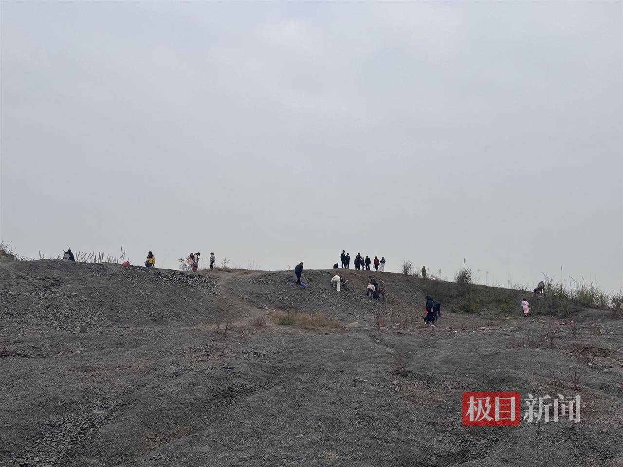 12月15日,极目新闻记者实地探访现场看到,这块空地位于学校和小区之间,有明显起伏。虽然是周一,仍有不少市民带着孩子在这块空地上用铁锤、钢钎敲敲打打,在石块中找寻。甚至有家长给孩子准备了一个便携电钻,用来挖掘。