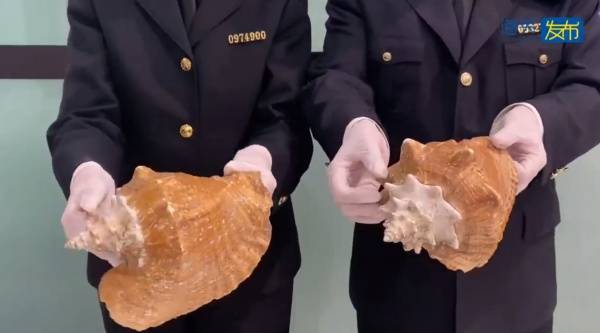 查获的女王凤凰螺。图/海关发布微博视频截图
