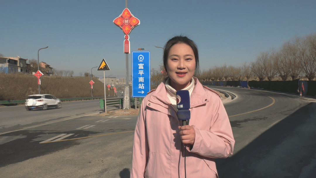 记者 蒋颖乐:我现在所在的位置,是连接富平南站和富昌大道的Y310路段。可以看到我脚下的沥青已经完全铺好了,道路标线清晰,车辆已经完全可以通过了。旅客从富平南站出来之后,可以直接从这个道路前往前面的富昌大道,进而前往县城或中华郡。可以说,这是一条从车站到家门口,从旅途到风景的路。