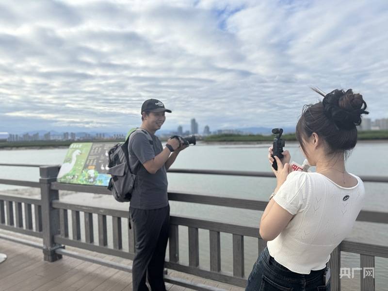 记者在下潭尾红树林湿地公园遇到了摄影爱好者(央广网记者 吴馨骅 摄)
