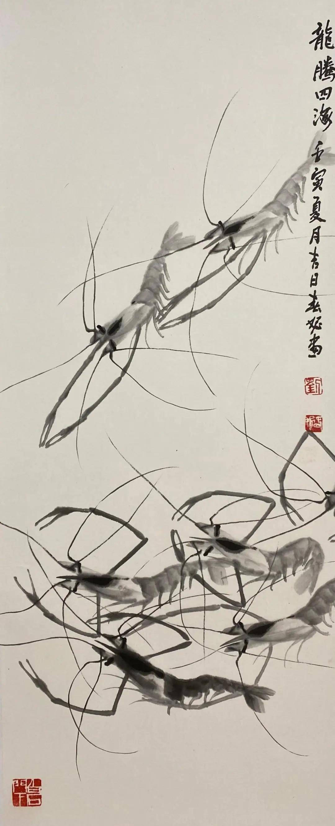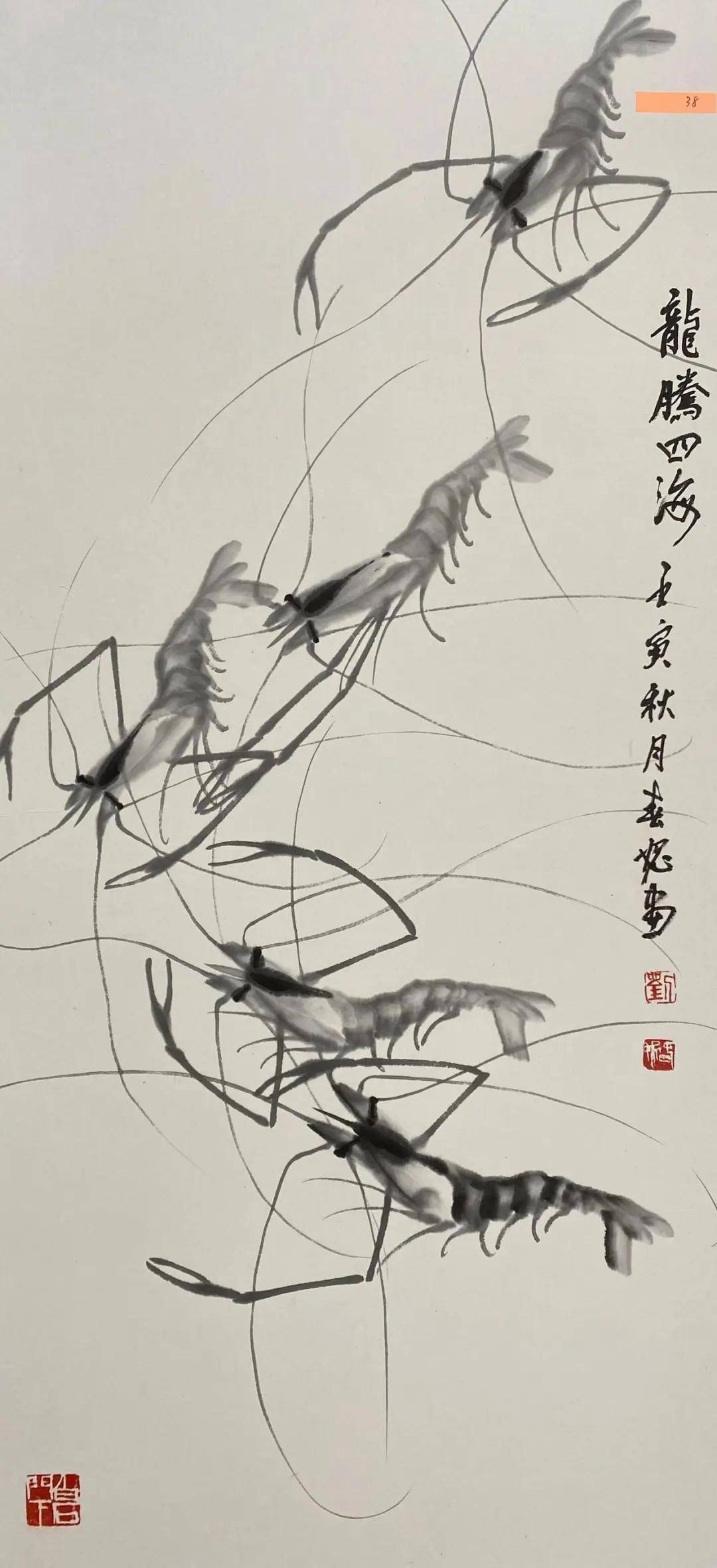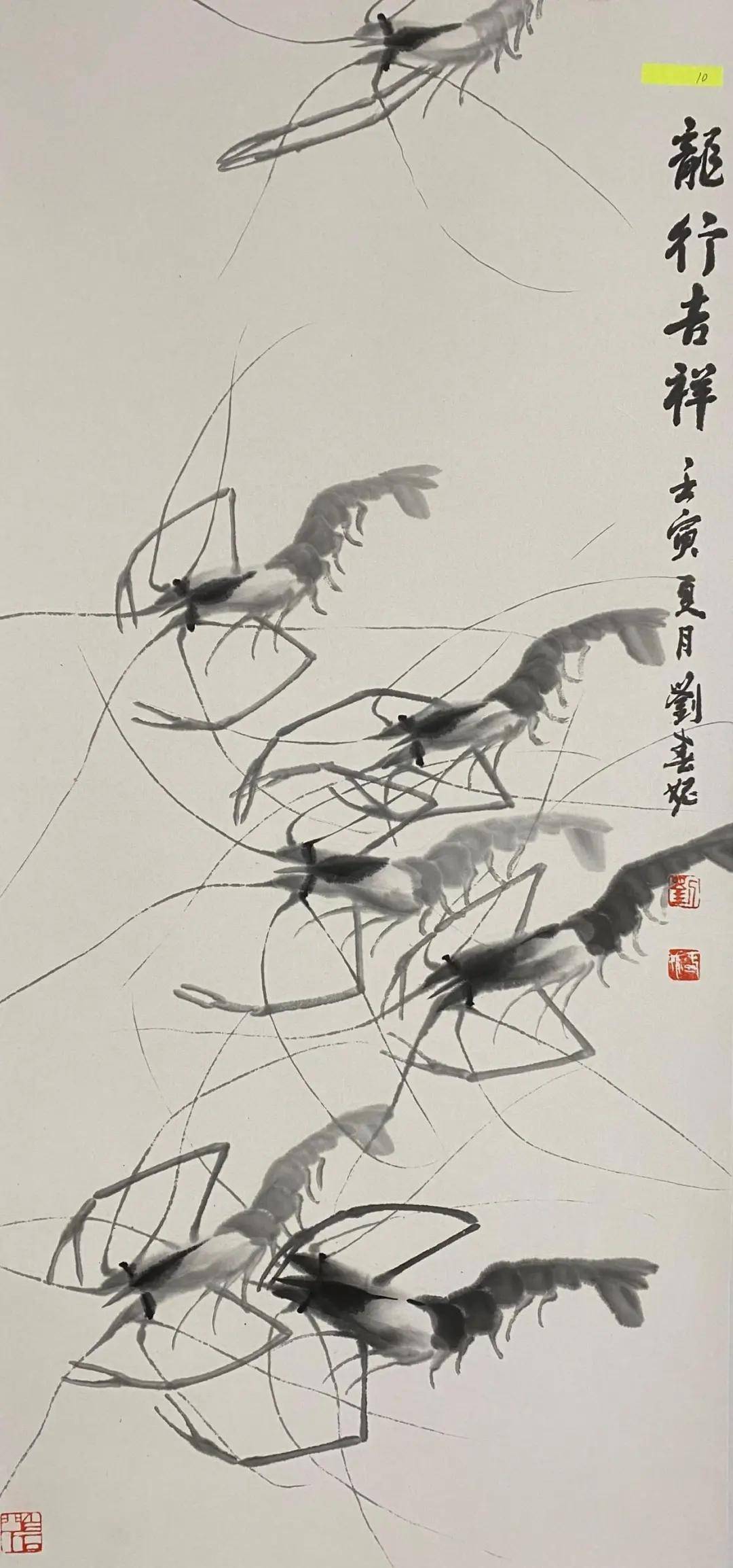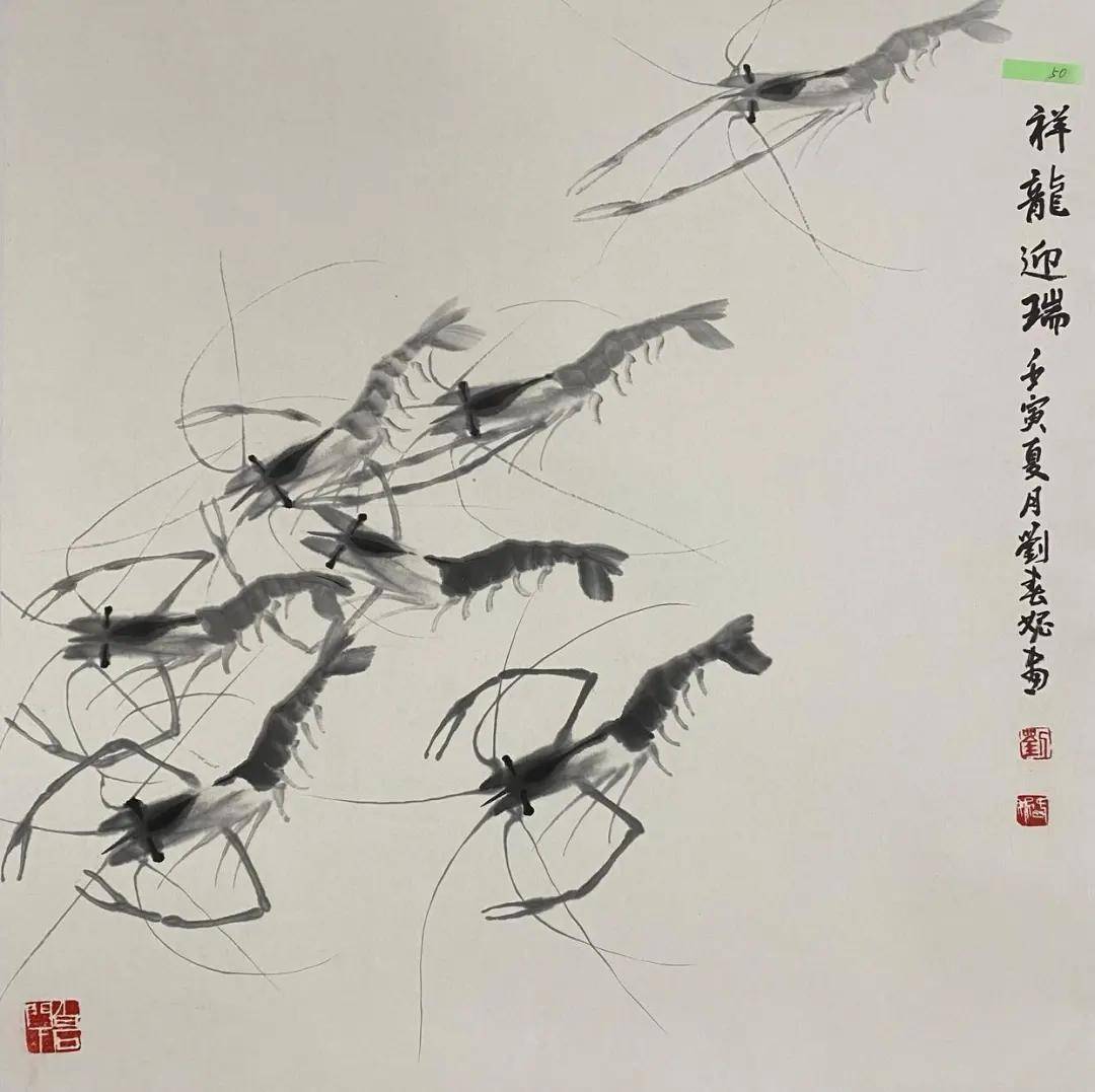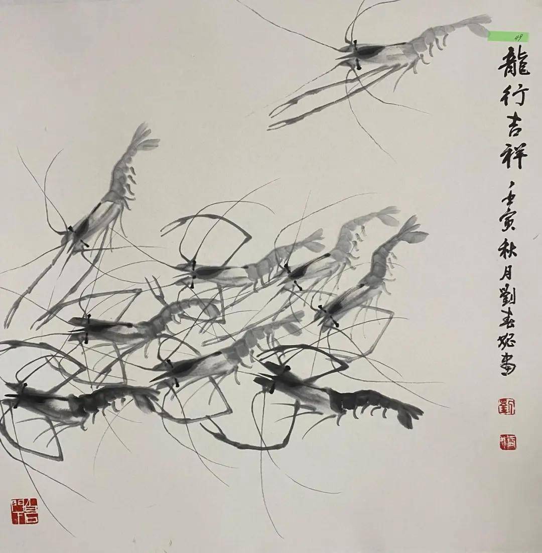 刘春妮老师用笔或轻或重,用色或淡或重,深入浅出,大小有序,动静结合。其笔下的虾极富动态之美,形神兼备。