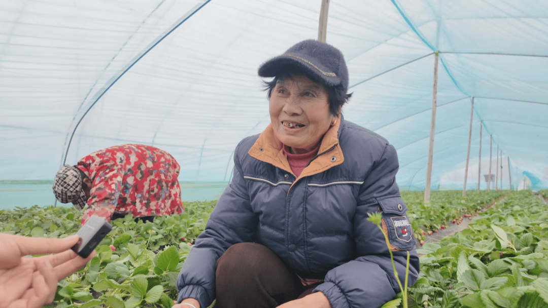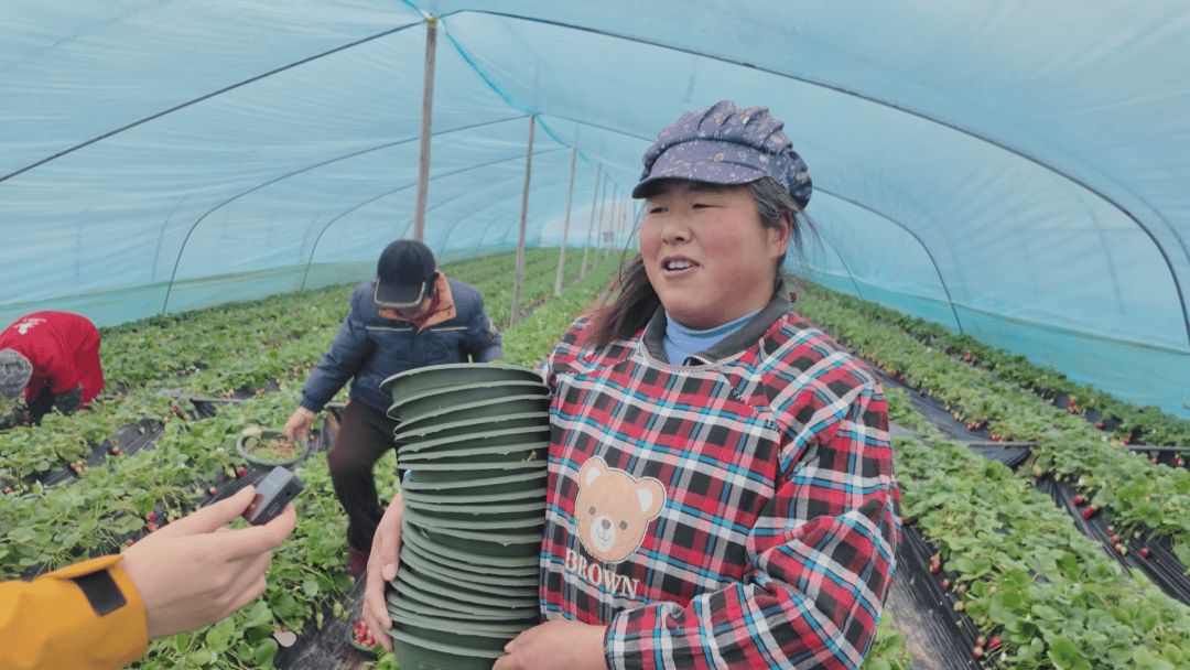 村民 王银川:我家就在这附近,离这里也近,把家里照看了,也把钱挣了,在这摘个草莓活也不重,一天八个小时,挺好的。