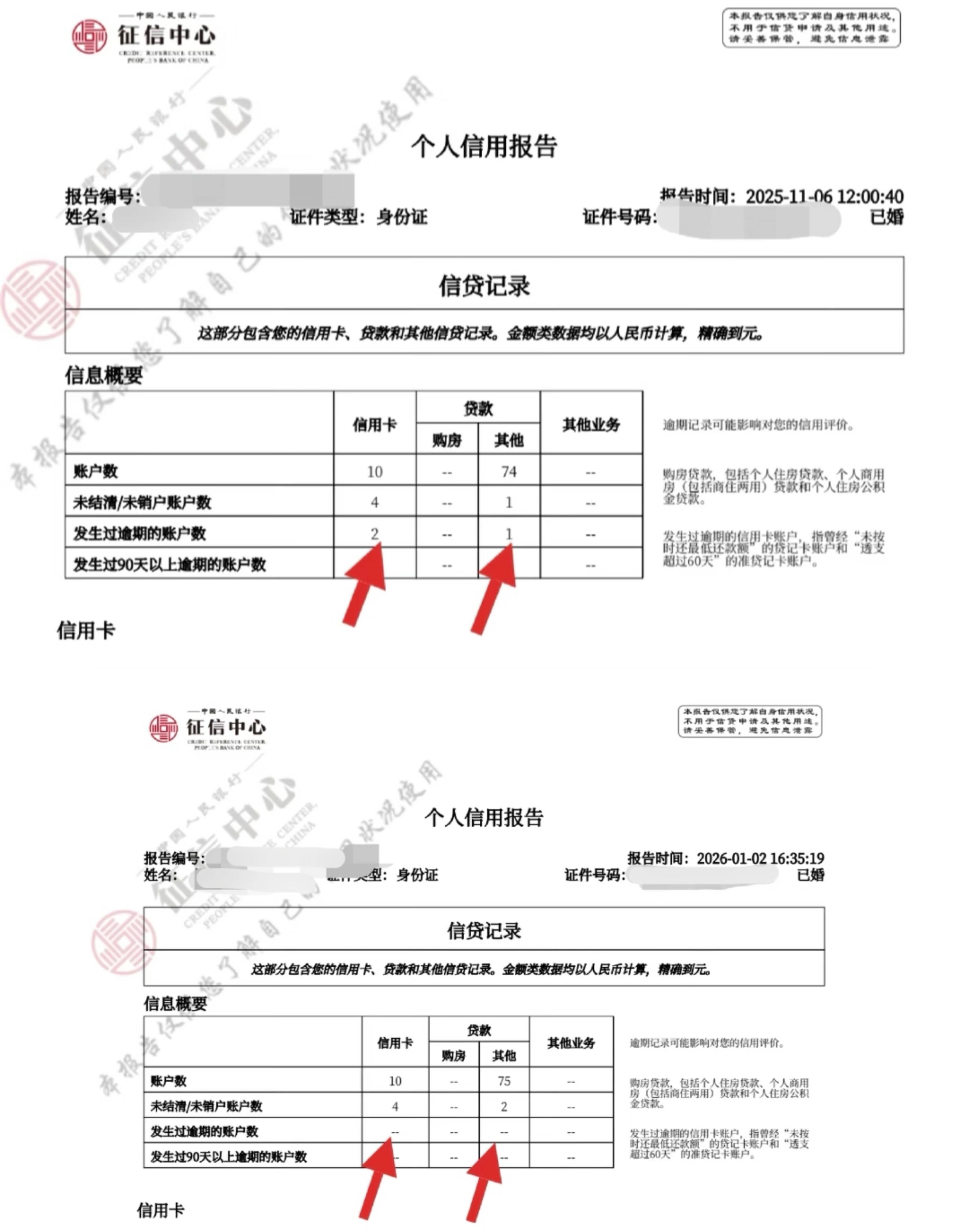 程远的征信记录报告更新前后。讲述者供图