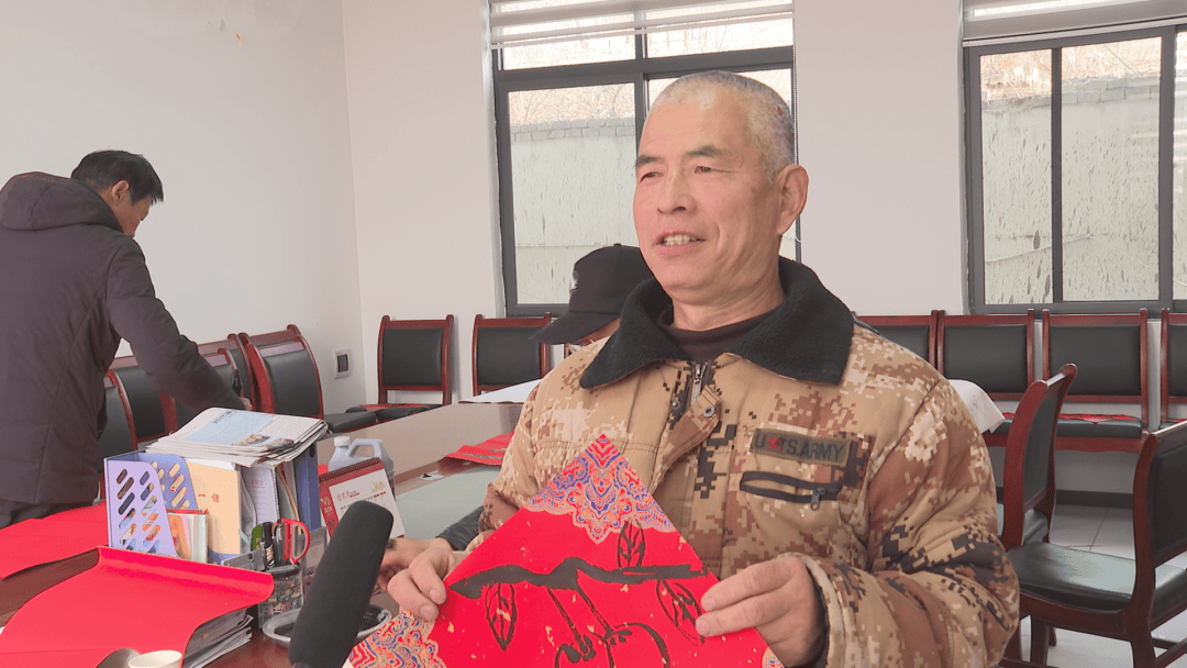 淡村镇亭子村村民 刘忠强:今天来到这里领到了书法老师为大家写的春联,还有福字,我非常的高兴。祝大家在新的一年身体健康,万事如意!