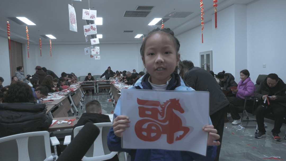 群众 余晨茵:这次剪纸活动非常的有意思,我学会了剪福字、折纸和怎样使用剪刀。我觉得剪纸非常的神奇,我把这个剪好的福字送给大家,祝大家马年福气满满,万事如意。