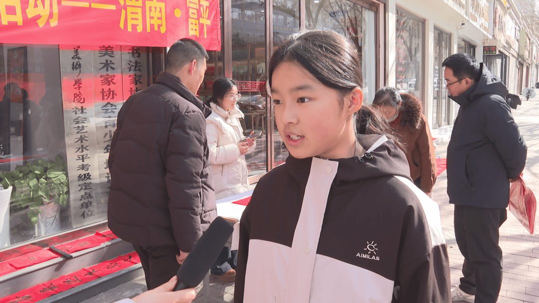 学生 惠辰芊:在学校我经常练习书法,刚好这次活动给予我书写机遇,我帮助许多叔叔阿姨,写了很多春联,我非常开心,他们很喜欢我写的春联。这也正好提升了我的书法技艺。