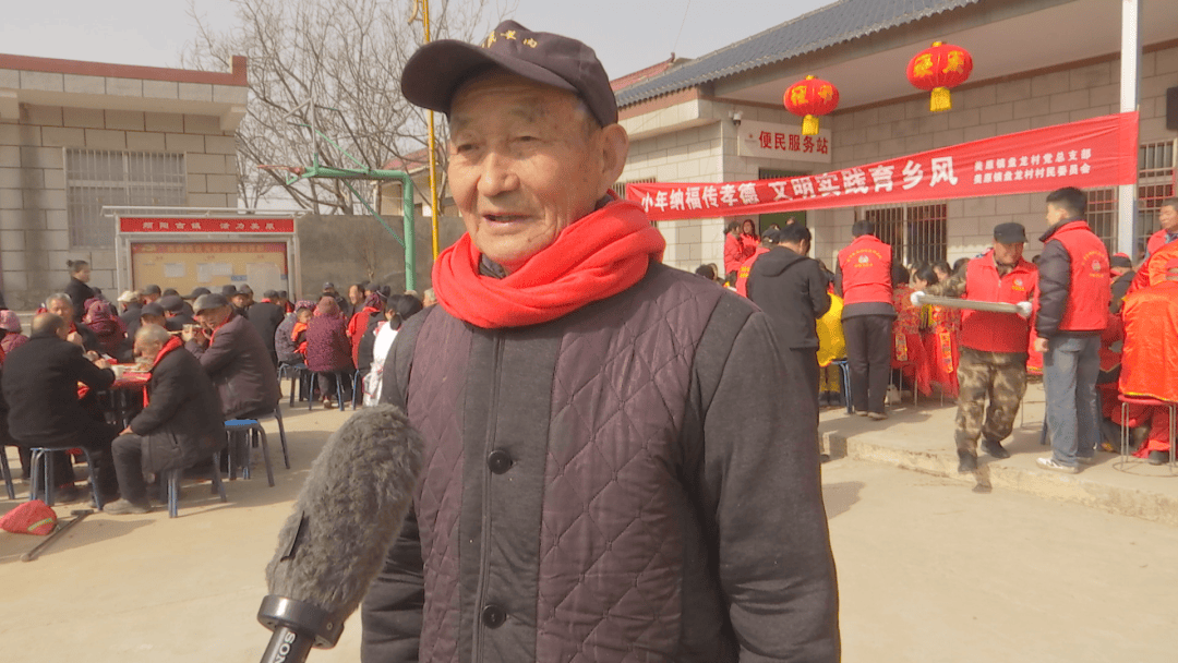 美原镇盘龙村村民 许斌奇:今天看到村里办这个活动,我心里特别的高兴,敬老爱老是中华民族的传统美德,希望村里的老人能健健康康的过好每一天,也希望村里的干部能带领全村人过上幸福的生活。