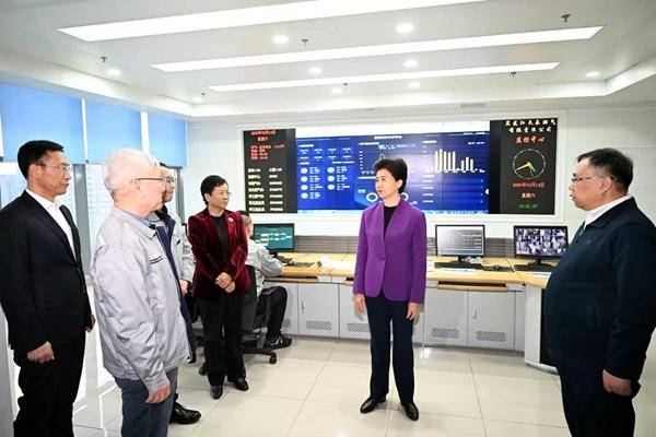 在国网黑龙江省电力有限公司电力调度控制中心,梁惠玲了解电网运行、电力保供等情况,看望慰问值班值守工作人员。