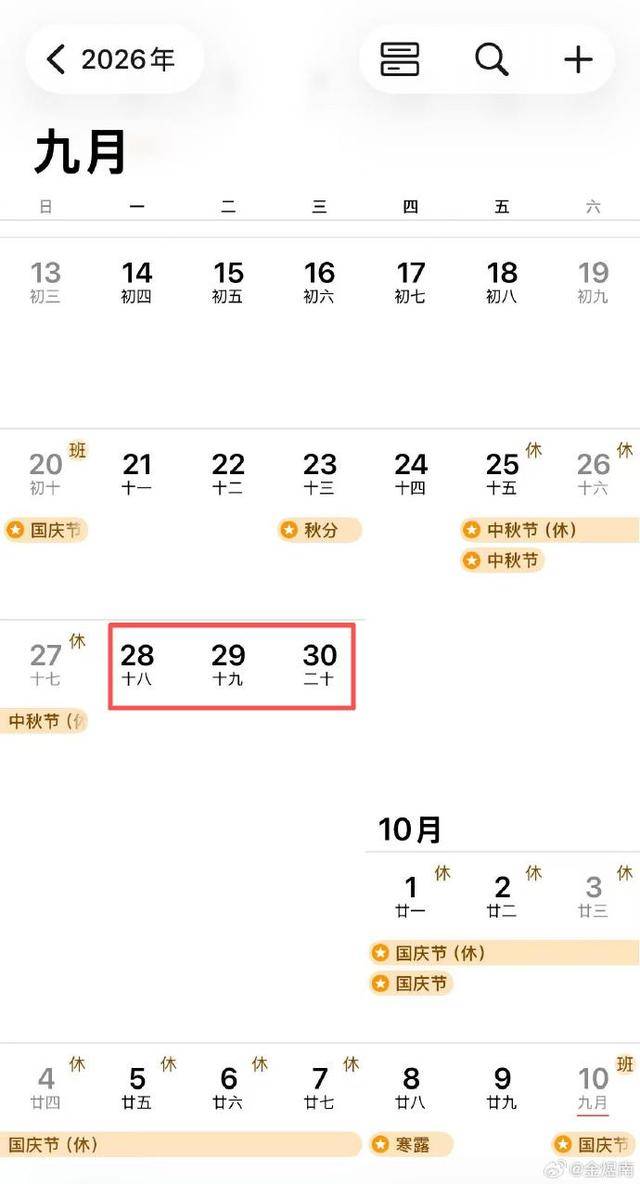 中秋+国庆:请3天休13天(年度王炸)