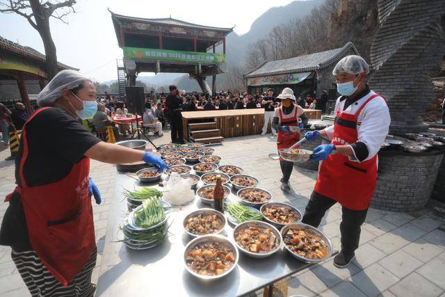 本届活动以“春季植绿+免费民俗宴”为核心亮点,通过线上小程序便捷报名,吸引众多亲子家庭、企业团队踊跃参与,成为京郊春季文旅消费新热点。活动现场,游客在专业指导下栽苗培土、挂牌留念,将绿色理念融入实践;景区设置多处春日打卡点,让游客沉浸式感受生态之美。植树体验后,极具乡土特色的杀猪菜宴席开席迎客,食材选用本地散养土猪与新鲜蔬菜,搭配本土歌曲合唱、民俗互动等环节,让游客在品尝山野风味的同时,近距离感受平谷乡村文化魅力。